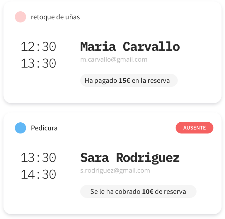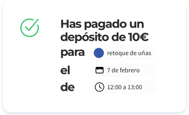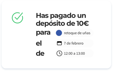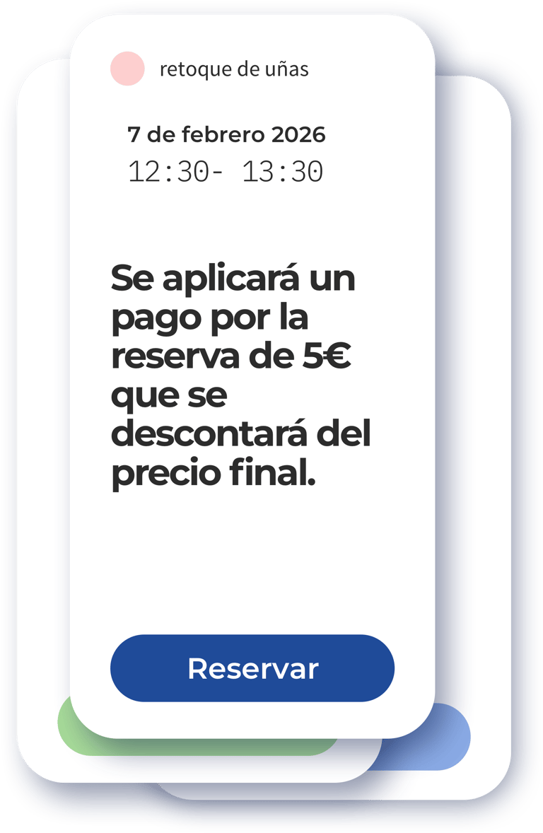 Cobra un pago por reserva y reduce cancelaciones de última hora y citas que no se presentan.